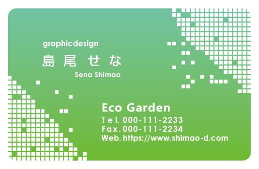 【tile_green】 プラスチックデザイン_タイル_グリーン 2024 8/09 プラスチックデザイン_タイル_グリーン (tile_green) 透明素材のプラスチック名刺(スケルトン名刺)です。右上と左下の模様は、無色透明になります。文字の部分は視認性を高めるために、基本的に不透明の白色になります。文字も無色透明をご希望の場合は、ご注文時の備考欄またはメールにてご連絡いただけましたらそのように対応させていただきます。(白い半透明の台紙をご利用の場合は、白印刷はできませんのでご了承ください。) 文字色:不透明 白 素材の選択 透明素材 86 X 54mm・・・プラスチック素材。完全に透明な台紙で文字やロゴが浮かびあがります。シンプルで強烈な印象を相手に与えます。文字などには、視認性を高めるために白の下地の印刷を使用し、光を通さない不透明になります。白い半透明素材 91 X 55mm・・・プラスチック素材。ツヤのある白い半透明の素材に印刷するので、デザインがよく映えます。すりガラスのような上品な印象です。白印刷はできません。 納 期 校了後および入金確認後約9~11営業日間お時間に余裕をみてご注文ください。 色 フルカラー印刷(オフセット印刷 片面=4C+白の下地)(※白い半透明の素材は白印刷はできません) サイズ (透明素材)86 X 54mm 角丸(白い半透明の素材)91 X 55mm 角丸 その他 透明素材のため裏面はありません実際の仕上がり商品とお使いのモニター上の「色」が多少異なって表現される場合もございます。あらかじめご了承ください。 【ご注文に際してのご注意】 商品お届けまでに9日間ー11営業日間ほど少しお時間をいただきますが、その分お安く提供することが 可能になっております。お時間に余裕をみてご注文ください。 【カートに入れる際のご注意】 「文字色の選択」の項目がある場合は、選択してからカートに入れてください。(選択しないとカートに入りませんのでご注意ください) 注文番号タイトル販売価格在庫状態数量単位 pra_100100枚(透明素材)86x54mm¥7,180在庫有りセット pra_200200枚(透明素材)86x54mm¥11,680在庫有りセット pra_400400枚(透明素材)86x54mm¥16,180在庫有りセット prawhite_100100枚(白い半透明の素材)91x55mm¥7,880在庫有りセット 商品 タイルシリーズ スケルトン名刺 デザイン名刺 プラスチック名刺 格安名刺