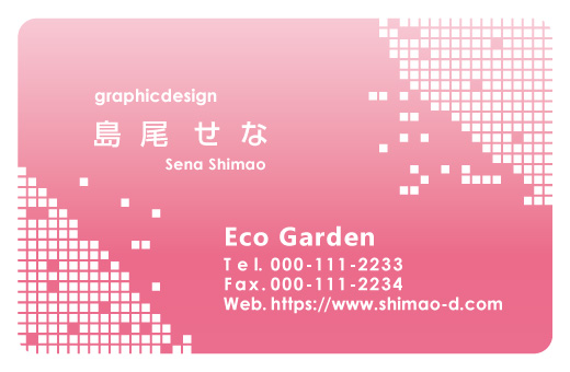 プラスチック名刺_タイル_ピンク 2024 8/09 プラスチックデザイン_タイル_ピンク (tile_pink) 透明素材のプラスチック名刺(スケルトン名刺)です。右上と左下の模様は、無色透明になります。文字の部分は視認性を高めるために、基本的に不透明の白色になります。文字も無色透明をご希望の場合は、ご注文時の備考欄またはメールにてご連絡いただけましたらそのように対応させていただきます。(白い半透明の台紙をご利用の場合は、白印刷はできませんのでご了承ください。) 文字色:不透明 白 素材の選択 透明素材 86 X 54mm・・・プラスチック素材。完全に透明な台紙で文字やロゴが浮かびあがります。シンプルで強烈な印象を相手に与えます。文字などには、視認性を高めるために白の下地の印刷を使用し、光を通さない不透明になります。白い半透明素材 91 X 55mm・・・プラスチック素材。ツヤのある白い半透明の素材に印刷するので、デザインがよく映えます。すりガラスのような上品な印象です。白印刷はできません。 納 期 校了後および入金確認後約9~11営業日間お時間に余裕をみてご注文ください。 色 フルカラー印刷(オフセット印刷 片面=4C+白の下地)(※白い半透明の素材は白印刷はできません) サイズ (透明素材)86 X 54mm 角丸(白い半透明の素材)91 X 55mm 角丸 その他 透明素材のため裏面はありません実際の仕上がり商品とお使いのモニター上の「色」が多少異なって表現される場合もございます。あらかじめご了承ください。 【ご注文に際してのご注意】 商品お届けまでに9日間ー11営業日間ほど少しお時間をいただきますが、その分お安く提供することが 可能になっております。お時間に余裕をみてご注文ください。 【カートに入れる際のご注意】 「文字色の選択」の項目がある場合は、選択してからカートに入れてください。(選択しないとカートに入りませんのでご注意ください) 注文番号タイトル販売価格在庫状態数量単位 pra_100100枚(透明素材)86x54mm¥7,180在庫有りセット pra_200200枚(透明素材)86x54mm¥11,680在庫有りセット pra_400400枚(透明素材)86x54mm¥16,180在庫有りセット prawhite_100100枚(白い半透明の素材)91x55mm¥7,880在庫有りセット 商品 タイルシリーズ スケルトン名刺 デザイン名刺 プラスチック名刺 格安名刺